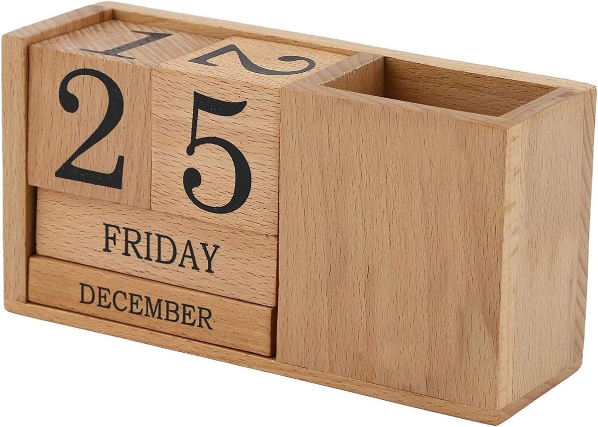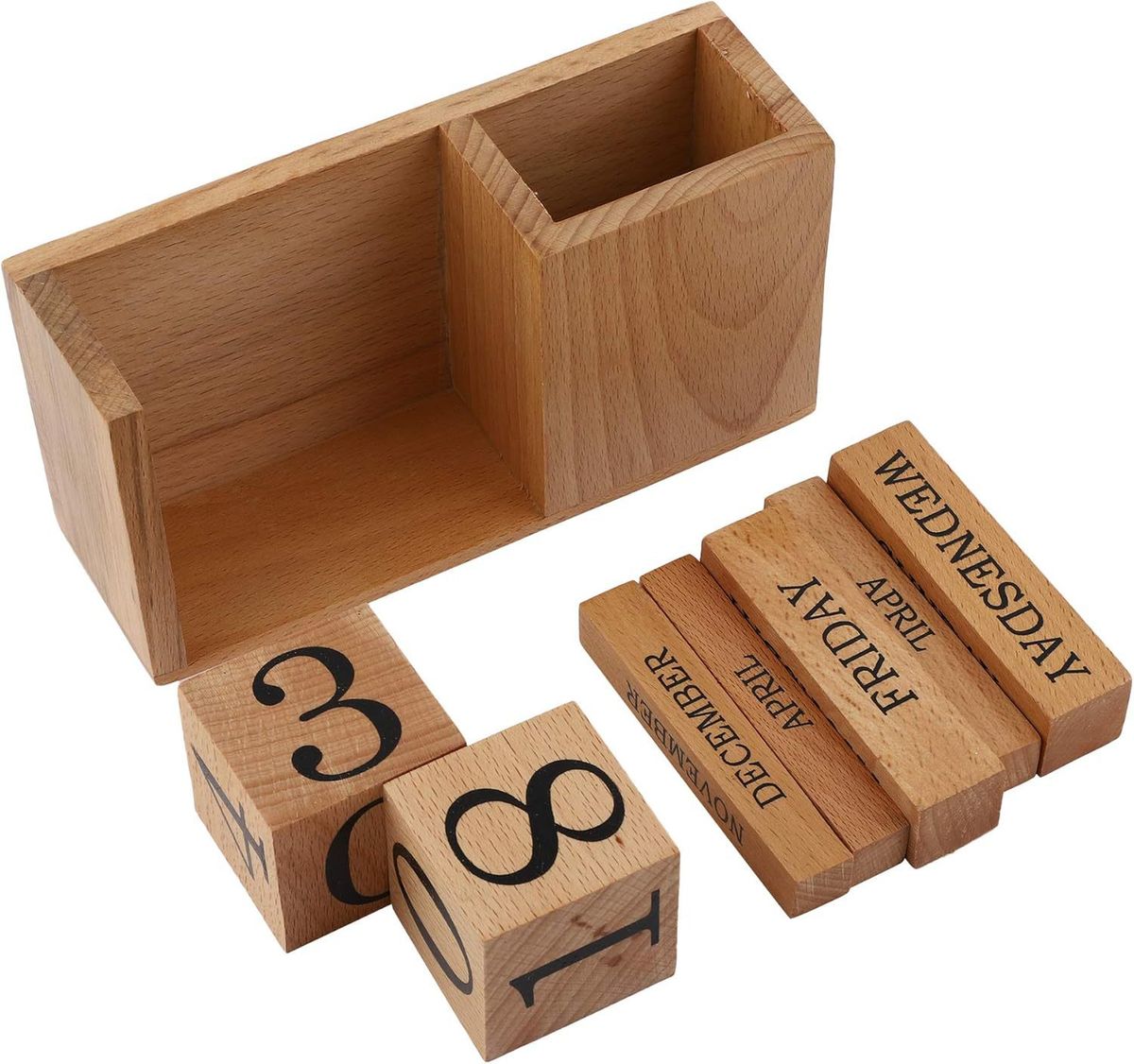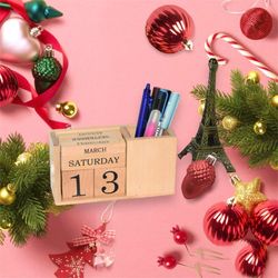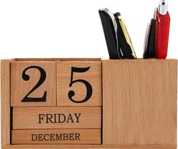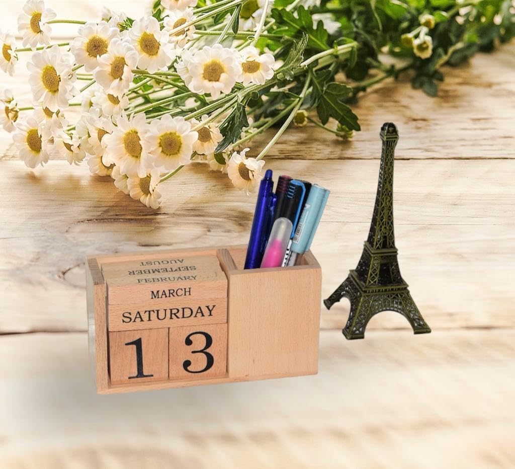 This daily desk calendar is made with wood. Large printed dates are easy to read from a distance. Every block has a slightly different natural wooden texture. As the blocks are handmade. It would make a perfect gift item for a work colleague, office friend or a family member.